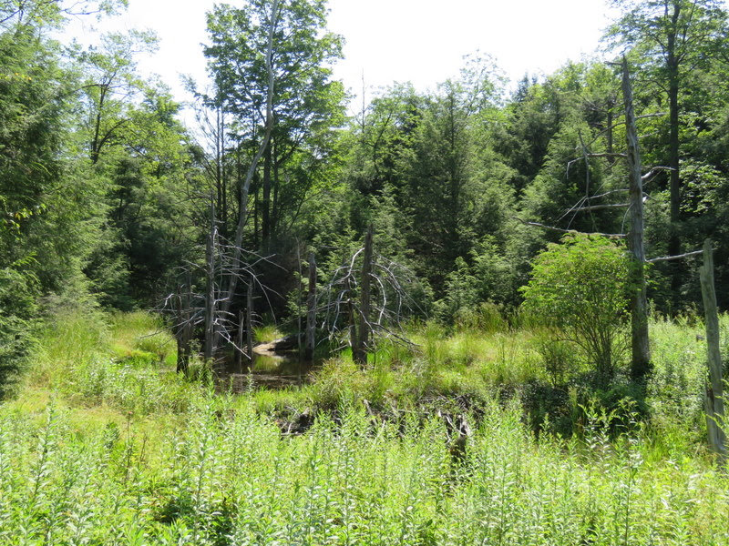 There were areas that had a lot of mixed flock birds feeding. We saw Cedar Waxwings, Chestnut-sided Warblers, Indigo Buntings, Canada Warblers, House Wrens and a Hermit Thrush. No new birds were seen today, but it was great finding birds again since our last few hikes haven't really had many. We also came across a garter snake.
